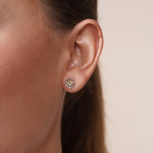 14KE0002. - 14 Karat Yellow & White Gold Diamond Cut Flower Earrings