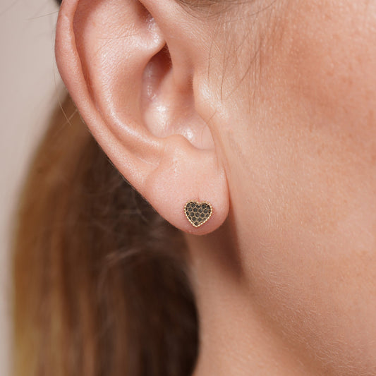 14KE0005. - 14 Karat Yellow Gold Beaded & Honeycomb Heart Earrings