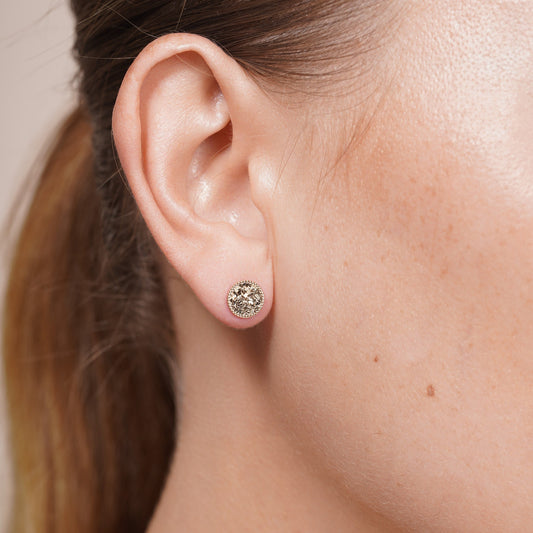14KE0015. - 14 Karat Yellow Gold Beaded & Confetti Diamond Cut Disc Earrings