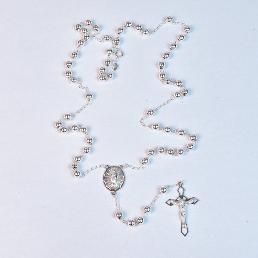 High Polished 925 Sterling Silver 6mm Smooth Bead Rosary - ORP00005