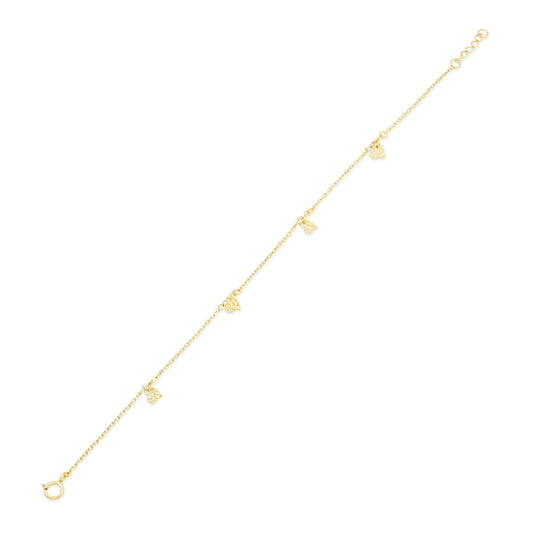 14KB0001. - 14 Karat Yellow Gold Multi Heart Clear CZ Charm Adjustable Bracelet