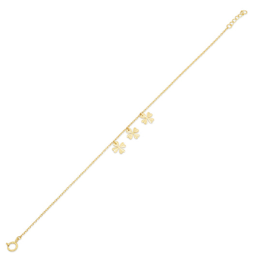 14KB0005. - 14 Karat Yellow Gold Diamond Cut Four Leaf Clover Charms Adjustable Bracelet