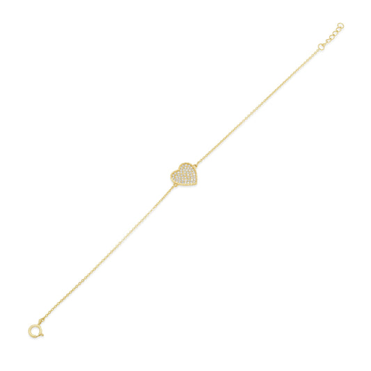 14KB0011. - 14 Karat Yellow Gold Diamond Cut Heart Studded CZ Charm Adjustable Bracelet