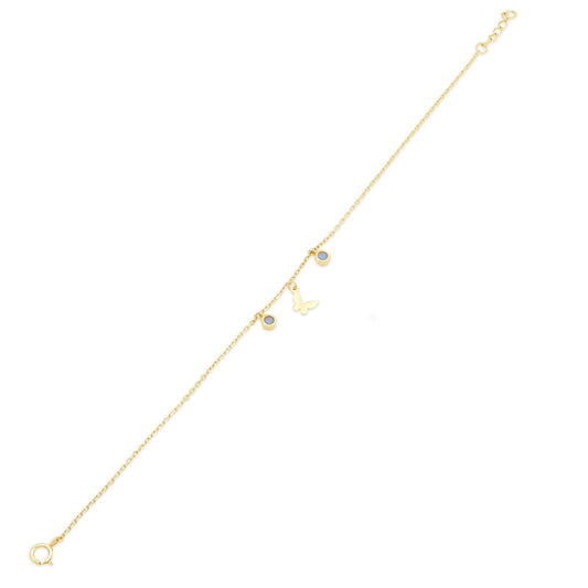 14KB0013. - 14 Karat Yellow Gold Butterfly and Round Opal Charms Adjustable Bracelet