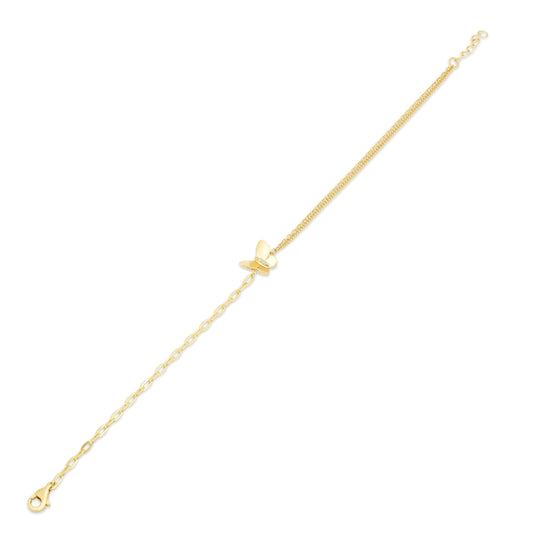 14KB0014. - 14 Karat Yellow Gold Butterfly Charm Double Strand Paperclip Adjustable Bracelet