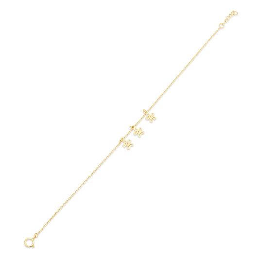 14KB0015. - 14 Karat Yellow Gold Three Flowers Charm Adjustable Bracelet