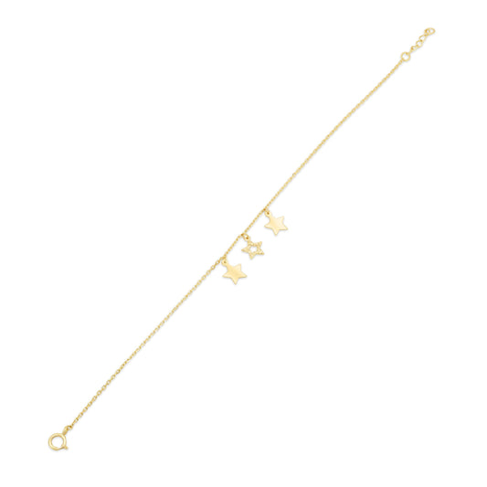 14KB0019. - 14 Karat Yellow Gold Three Stars Diamond Cut Charm Adjustable Bracelet