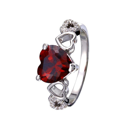 Rhodium Plated 925 Sterling Silver Heart Red and Clear CZ W- Heart Shank Ring - BGR01342