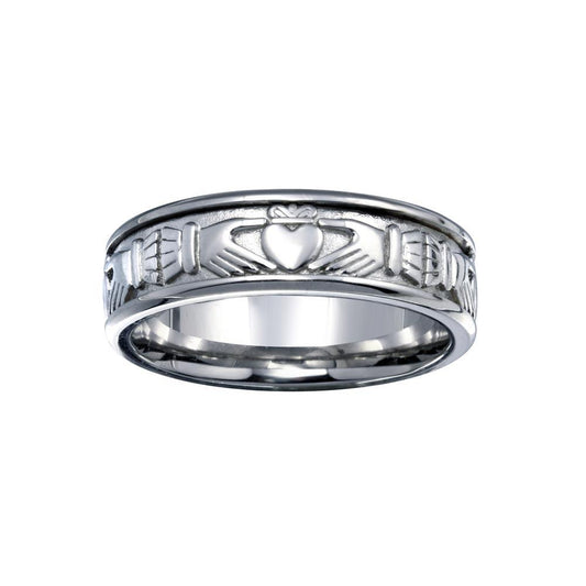 Rhodium Plated 925 Sterling Silver Men's Claddagh Band 6.5mm - EWR00006
