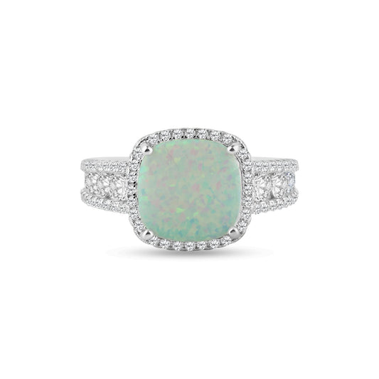 Rhodium Plated 925 Sterling Silver Opal and Clear CZ Ring - BGR01332
