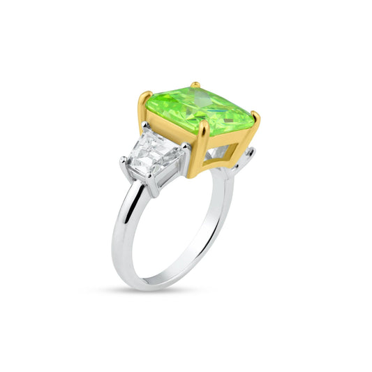 Rhodium Plated 925 Sterling Silver Past Present Future Green CZ Ring - BGR01364
