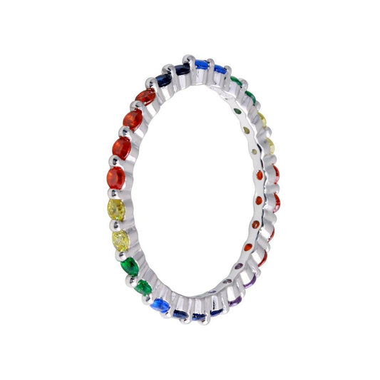 Rhodium Plated 925 Sterling Silver Rainbow CZ Eternity Ring - BGR01244