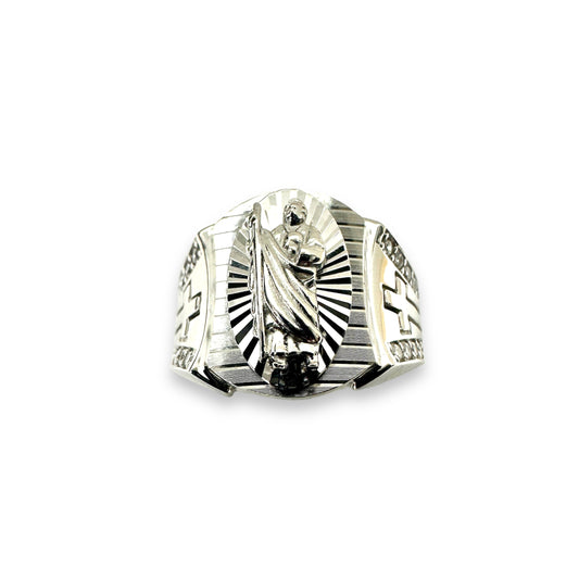 Rhodium Plated 925 Sterling Silver St. Jude Our Lords Prayer Clear CZ 11.2mm Ring - GMR00394