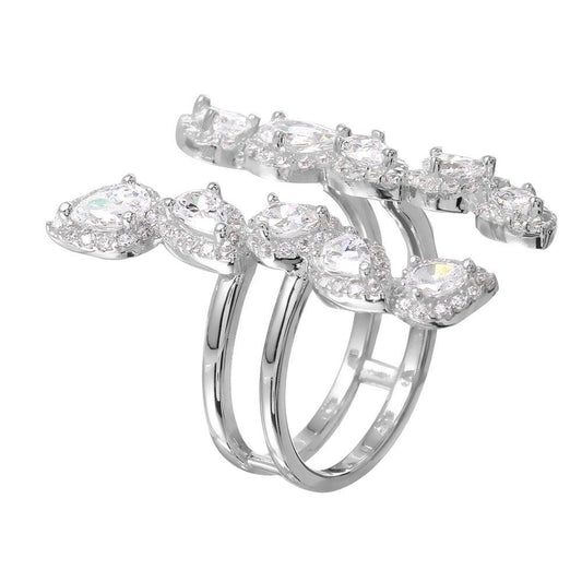 Silver 925 Rhodium Plated CZ Overlap Ring - AAR0034