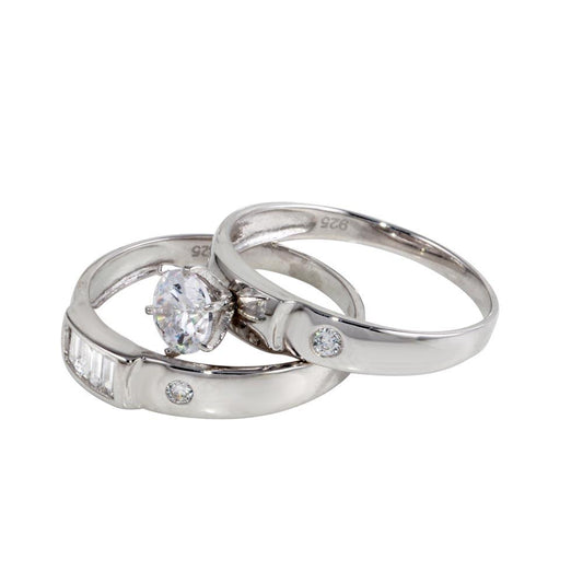Silver 925 Rhodium Plated Double Stackable Rings with CZ - GMR00266