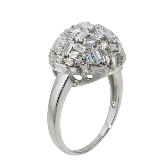 Silver 925 Rhodium Plated Half Sphere Ring with Rectangle CZ - STR01070