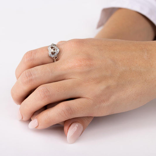 Silver 925 Rhodium Plated Heart 15 Ring with CZ - TMR00002
