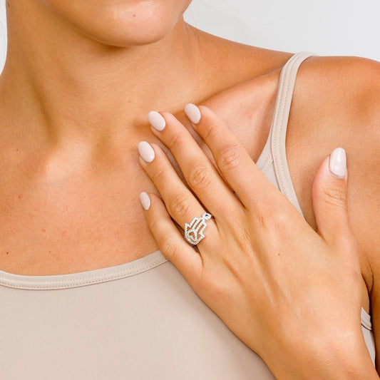 Silver 925 Rhodium Plated Heart Hamsa and Evil Eye with CZ - GMR00211