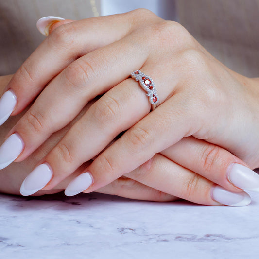 Silver 925 Rhodium Plated Knotted Red CZ Ring - BGR01112RED