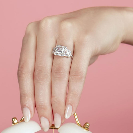 Silver 925 Rhodium Plated Micro Pave CZ Square Ring - ACR00045