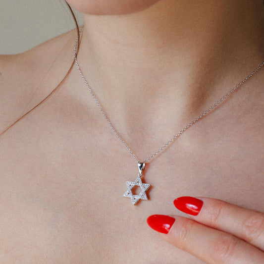 Silver 925 Rhodium Plated Open Hebrew Star Micro Pave CZ Dangling Pendant - ACP00035