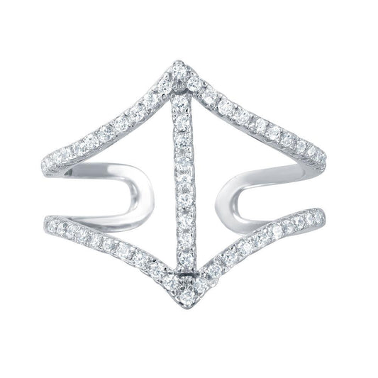 Silver 925 Rhodium Plated Open Shank CZ Encrusted Ring - BGR00964