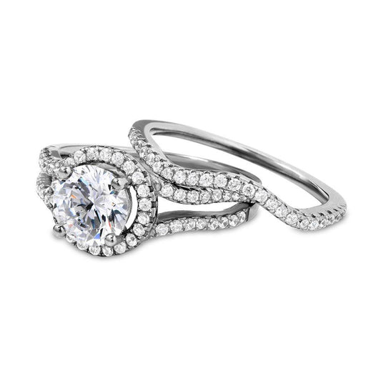 Silver 925 Rhodium Plated Open Shank Halo Wedding Ring - STR01049
