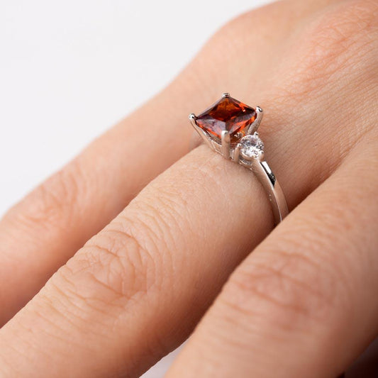 Silver 925 Rhodium Plated Red CZ Center Stone Ring - BGR01138RED