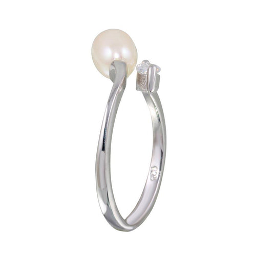 Silver 925 Rhodium Plated Ring with Pearl and CZ - BGR01129