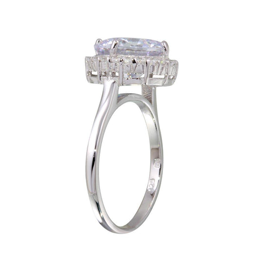 Silver 925 Rhodium Plated Round Center Diamond Shaped Sides CZ Bridal Ring - BGR00571