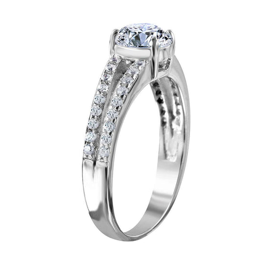 Silver 925 Rhodium Plated Split shank CZ Center Stone Ring - BGR01032