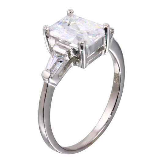 Silver 925 Rhodium Plated Square and Baguette CZ Stones Ring - STR00703