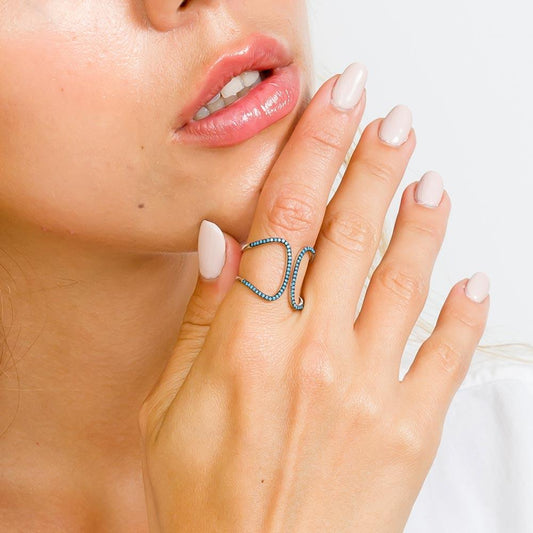 Silver 925 Rhodium Plated Turquoise Stones Ring - GMR00100BLA