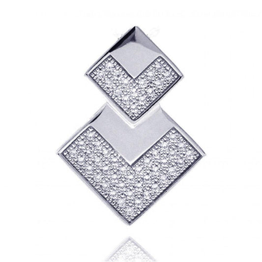 Silver 925 Rhodium Plated Two Graduated Square CZ Inlay Pendant - ACP00042