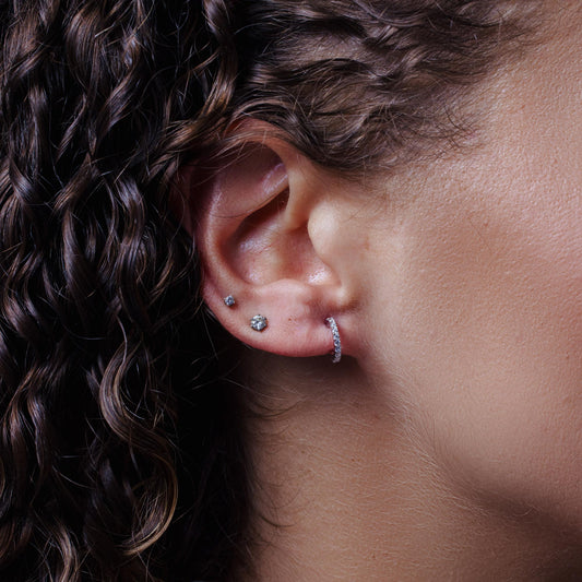 Sterling Silver Rhodium Plated CZ Huggie Semi Hoop Earrings - STE01349