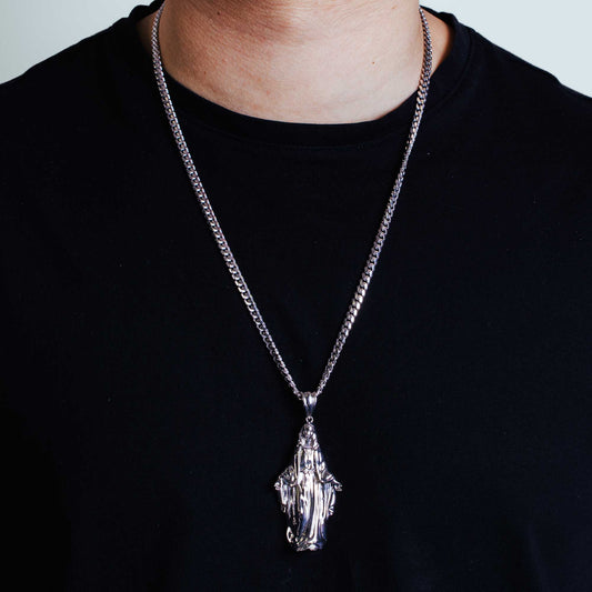 Rhodium Plated 925 Sterling Silver Hollow Mother Mary Pendant 42mm - GMP00091