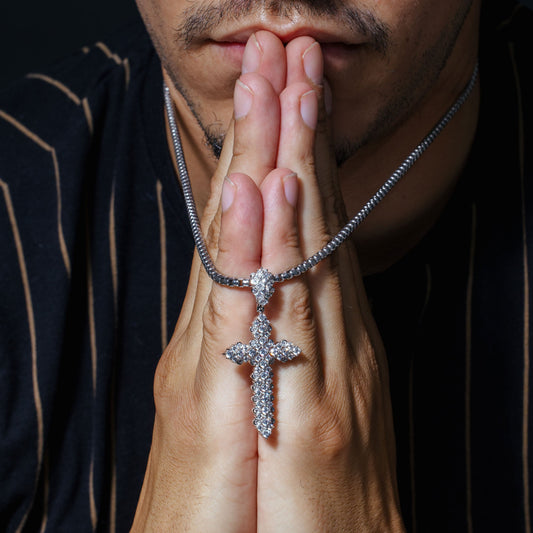 Rhodium Plated 925 Sterling Silver Cross Bubble CZ Hip Hop Pendant - SLP00174