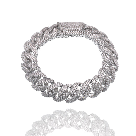 Rhodium Plated 925 Sterling Silver Pave Moissanite Iced Out Cuban Link 17mm Bracelet - MPAB00108