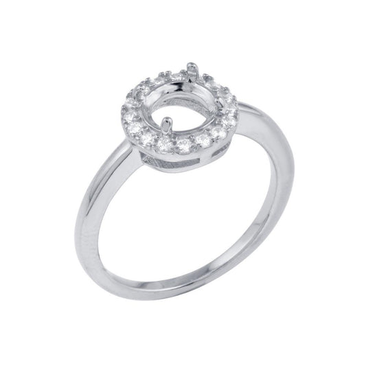 Rhodium Plated 925 Sterling Silver Clear CZ Round Mounting Ring - BGR01333