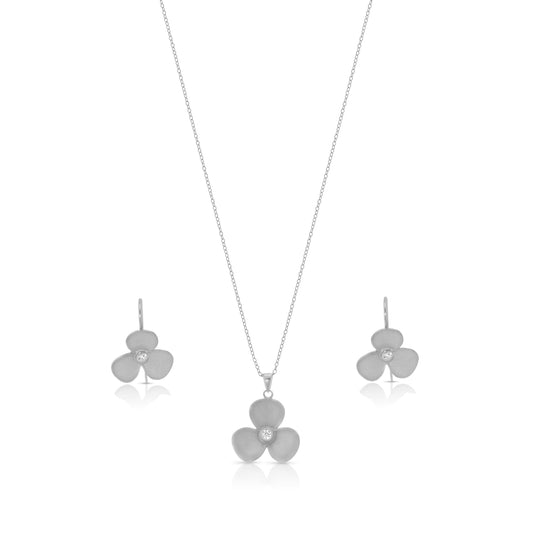 Clearance-Silver 925 Rhodium Plated Flower CZ Hook Earring and Necklace Set - STS00243