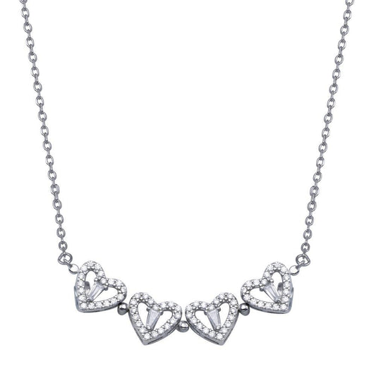 Rhodium Plated 925 Sterling Silver CZ Drop Down Heart Mounting Necklace - BGP01384