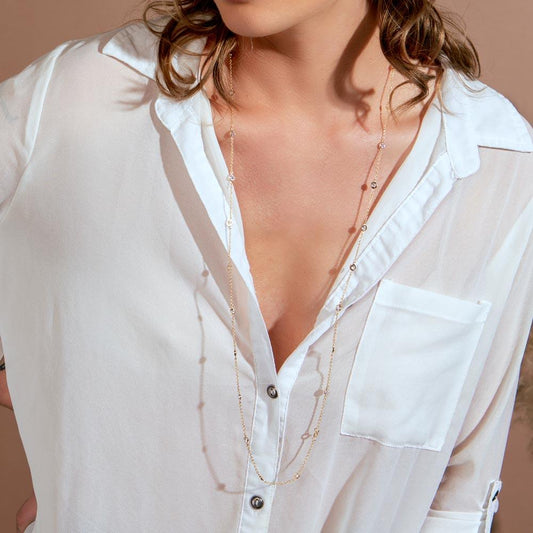 Silver 925 Rhodium Plated CZ By Yard Chain Necklace - STP00863