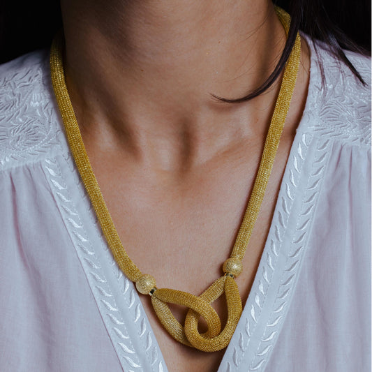 Silver 925 Gold Plated Knot Pendant Necklace - ARN00043GP
