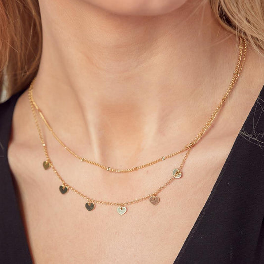 Gold Plated 925 Sterling Silver Multi Chain Dangling Heart Charm Necklace - ITN00143-GP
