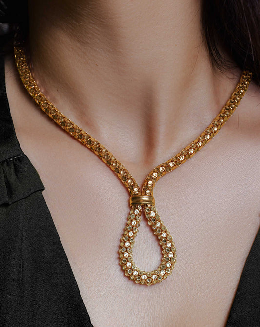 Silver 925 Rhodium Plated Champagne Drop CZ Hanging Stud Earring and Necklace Set - BGS00279
