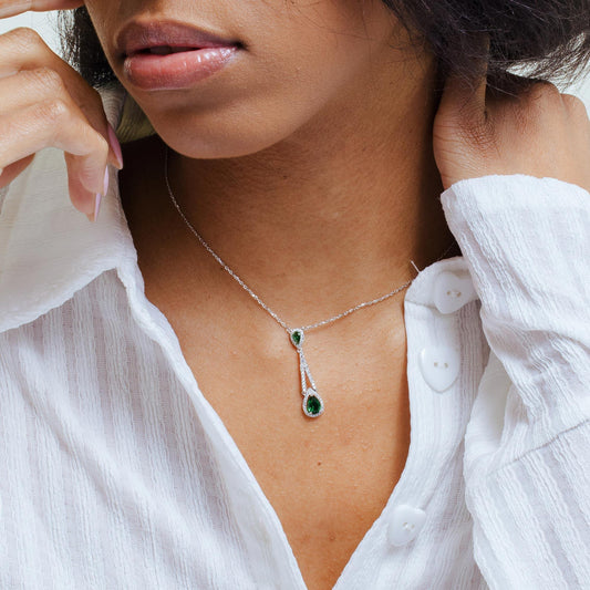 Rhodium Plated 925 Sterling Silver Teardrop Green CZ Necklace - BGP01423