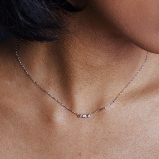 Rhodium Plated 925 Sterling Silver MAMA CZ Necklace - STP01842
