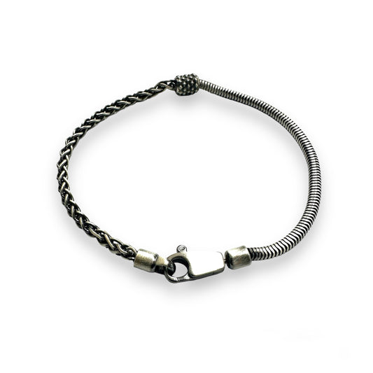 925 Sterling Gun Metal Plated Half Round Snake and Half Wheat Link Bracelet - BSB0001