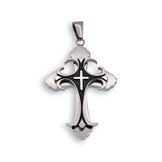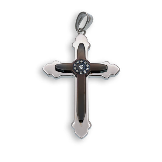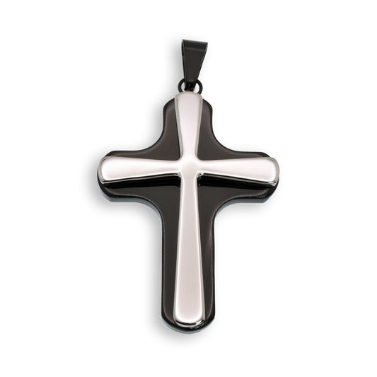 Black & Rhodium Plated Stainless Steel Layered Cross Pendant - SSP00168