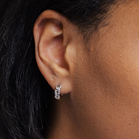 Chain Link CZ Huggie Hoop Earring 13.2mm - STE01353